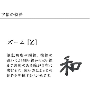 ズーム:筆記角度や縦線、横線の違いにより細い線から太い線まで強弱のある線が自在に書けます。使い方によって利便性を発揮するクリエイティビティなペン先です。