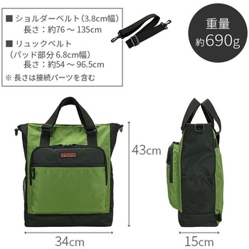 手提げ・肩掛け・リュックと持ち方を切り替えられる3wayトートバッグ。A3サイズの大容量ながら軽量約690gと、荷物の多い日も安心。外部には数種のポケット付きで整理もしやすい。リュックベルト収納、ハンドルの長さ調節可能など、使い勝手の良い仕様です。ジム、アウトドア、旅行や通勤など色々なシーンでご使用ください