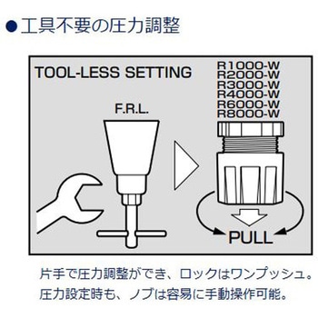 | 75749951 | R1000-8G-W-NTX1 | G1/4 | 0.16 | 逆流れ(右→左)、ノブ下向き | 圧力計なし(圧力計組立ポート(1/4)はシール状態で組立) | ノンリリーフタイプ | | |