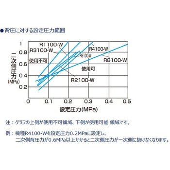 | 75751457 | R1100-6G-W-LNT8X1 | G1/8 | 0.16 | 逆流れ(右→左)、ノブ下向き | 0.05~0.35 | 圧力計添付用(圧力計組立ポート(1/4)は通気状態で組立) | | |