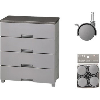 収納家具 フィッツチェスト 7504 グレー + 差込式キャスター CSP-40 グレー セット