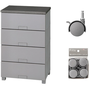 収納家具 フィッツチェスト フルフラット5504 グレー + 差込式キャスター CSP-40 グレー セット
