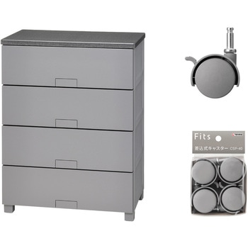 収納家具 フィッツチェスト フルフラット6504 グレー + 差込式キャスター CSP-40 グレー セット