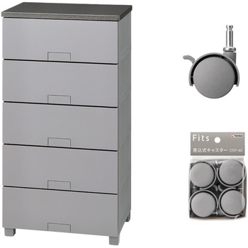 収納家具 フィッツチェスト フルフラット5505 グレー + 差込式キャスター CSP-40 グレー セット