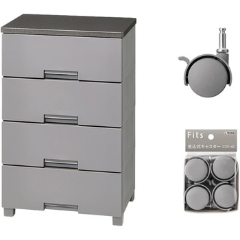 収納家具 フィッツチェスト 5504 グレー + 差込式キャスター CSP-40 グレー セット