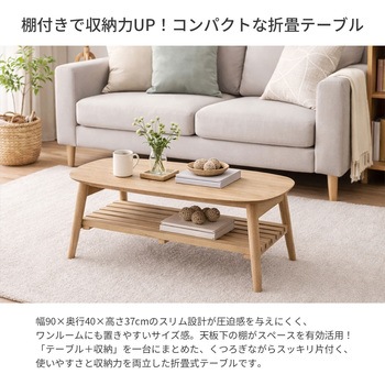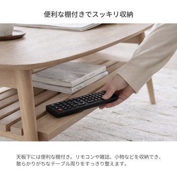 天板下の棚には、リモコンや雑誌、ノートPCやブランケットなどを置けてテーブルの上はいつも広々。