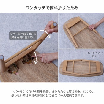 折りたたみ方法は、ワンタッチのレバーを引いて脚を倒すだけでとても簡単。