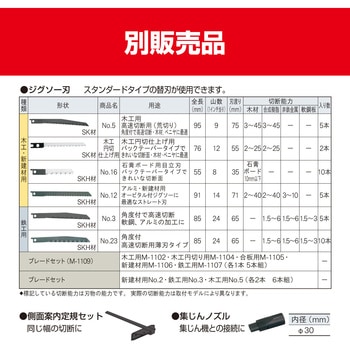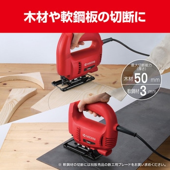 バックアップローラー付で作業がしやすいジグソーです木材、軟鋼板などの直線・曲線切断に最適です握りやすく操作性に優れたハンドル形状です別販売品の集じんノズルと集じんホースで集じん機に接続すれば粉じんや切り屑の少ない作業が可能です