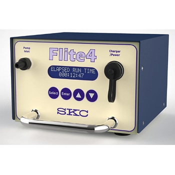 Flite4 Area Sample Pump本体のみであり、バッテリーは付属しません。流量範囲2~20 L/minでプログラム設定が可能で、鉛蓄電池(別売)またはAC電源(100-240 V)によるAC電源運転に対応します。Battery Charger Cat. No. 901-410またはLine Operation Adapter Cat. No. 901-411は別途購入が必要です。