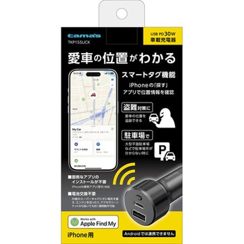 スマートタグ機能付PD30Wカーチャージャー C+A ブラック