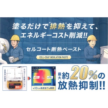 塗るだけでエネルギーコストを削減出来る屋内外兼用の水性塗膜断熱塗料セルコート断熱ペーストは、工場設備や配管の表面に塗布することで放熱を抑制し、エネルギーコスト削減に貢献します。これにより、設備の効率的な稼働をサポートし、長期的なコスト削減を実現します。【特徴】・室内外兼用・一液型で混合不要なため、すぐに使えます・2回の塗布で効率的に放熱を抑制