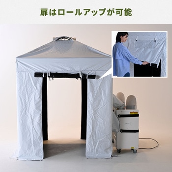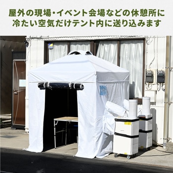 スポットクーラーの冷気をシェルター内で効率よく循環させて涼しい空間を作ります