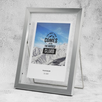 写真を2枚の透明なガラス板で挟んで展示する構造になっており、フレーム内に透明な空間があることによる独特の抜け感、浮遊感をお楽しみいただけます。フレームはメタル調シルバー・ブロンズの2色と、L判/2L判の2サイズ全4種展開 。