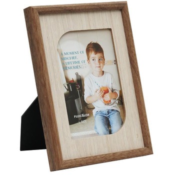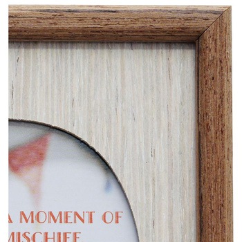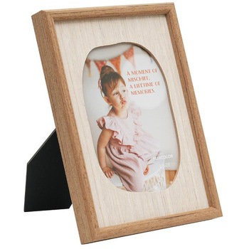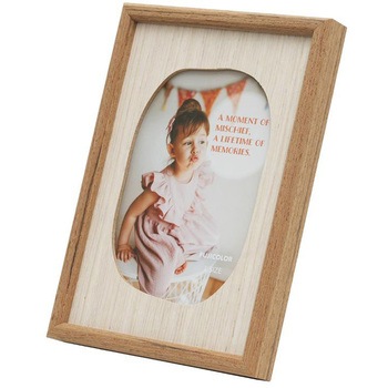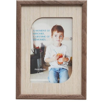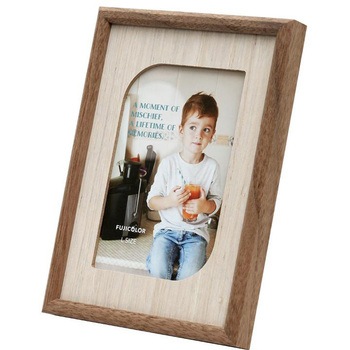 温かみのある木製マットを採用、四角や楕円ではない、遊び心溢れる窓枠デザインが印象的な木製フレームです。吊金具付きで壁掛けにも対応。