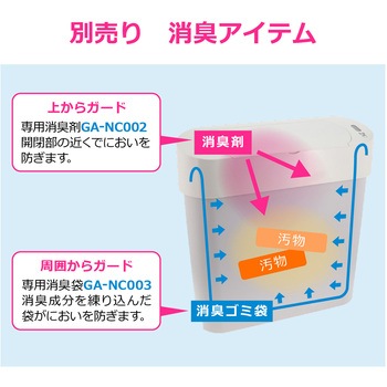 別売りの専用消臭剤(GA-NC002)と専用消臭ゴミ袋(GA-NC003)の併用で、気になるニオイをさらに抑えられます。
