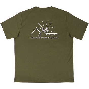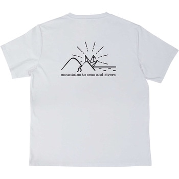 耐塩素加工された生地を使用しているため、タウンユースはもちろん、海でも使用できるハイブリッドTシャツ。海・登山や海水浴その他様々なスポーツに。水陸両用(耐塩素加工)優れた吸汗速乾性UVカット(UPF50+)ストレッチ性山、海、川のゆるいイラストを背中にプリント。胸元にはブランドロゴ。