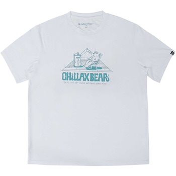 耐塩素加工された生地を使用しているため、タウンユースはもちろん、海でも使用できるハイブリッドTシャツ。海・登山や海水浴その他様々なスポーツに。水陸両用(耐塩素加工)優れた吸汗速乾性UVカット(UPF50+)ストレッチ性ゆったりくつろぐオリジナルキャラ”CHILLAX BEAR(チラックスベア)”のデザイン。