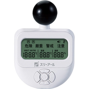 直射日光や地面からの照り返し(輻射熱)も検知する「黒球式」を採用した、熱中症指数モニタです。気温や湿度だけでは測れない「暑さ指数(WBGT)」を正確に数値化し、4段階の警告表示とアラーム音で危険をお知らせします。JIS B 7922 : 2023 準拠、精度区分:クラス 2で厚生労働省の熱中症対策ガイドラインに準拠。