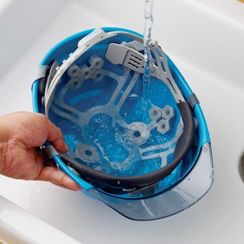 【クリアな視界】 透明ひさしを採用しているため、上向きの作業や天井の低い場所でも広い視界を確保でき、安全確認がスムーズです。