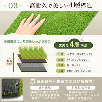 耐久性のある極ふかでリアルな人口芝です。厚くて丈夫な4層構造