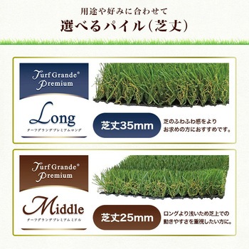 ロングはふわふわ感重視/ミドルは動きやすさ重視/アクティブはパターゴルフやお子様の遊び空間に最適。アクティブはパイルが短いため、ピン打ちは推奨しておりません。