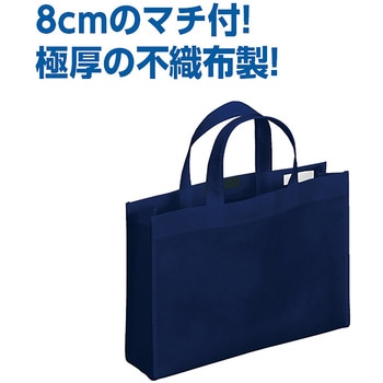 書類やノートをすっきり収納できる、シンプルで使いやすいトートバッグです。厚手の不織布製だから丈夫で長持ちし、8cmと広めのマチと面ファスナー付きで荷物をしっかり収めて安心の持ち運び。シンプルなデザインなので、オフィスや日常使いはもちろん、通勤・通学やイベント、ノベルティにもぴったりの万能アイテムです。