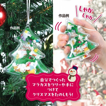 クリスマスにぴったり!しゃかしゃか楽しいかんたん工作マラカスキット!クリスマスツリーをモチーフにしたマラカスが作れる簡単工作キットです。 デコレーションシールとおはながみを使って、自分だけのオリジナルデザインに仕上げられます。ゴムひも付きで、手首やバッグに付けて持ち歩いたり、クリスマスツリーのオーナメントとしても使えます。はさみ・のり不要で、短時間で仕上げられるので、クリスマスのイベントやワークショップにもおすすめです。【対象年齢】3歳以上【製作時間】約10分