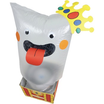 モーターの力で袋が飛び出す仕掛け貯金箱が作れます。自分で着色できるので、オリジナルの貯金箱が作れます。