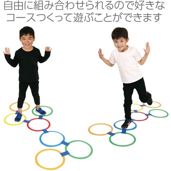 コミュニケーション力や認知機能を育てる!楽しいステップ運動!リングを組み替えて遊ぶことで、ジャンプやステップなど多様な運動あそびが楽しめるケンケンパリングセットです。配置やルールを工夫することで難易度を調整でき、運動が苦手なお子さんでも成功体験を積み重ねながら全身をバランスよく動かせます。複数人での活動を通して、体力づくりだけでなく、考える力や認知機能、コミュニケーション力や協調性を自然に育てられる知育・運動教材です。