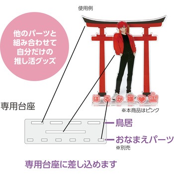 カスタムできる!推しのアクリルスタンドがセットできる鳥居ジオラマスタンド!お手持ちのアクリルスタンドに和風の世界観をプラスできる、鳥居モチーフのジオラマアクリルスタンドです。推しを中央に配置するだけで写真映えするディスプレイが完成し、カラー展開も豊富なため、推し色に合わせたカスタムが楽しめます。別売りのおなまえパーツと組み合わせれば、推しの名前や記念日を表現でき、日常の推し活はもちろん、誕生日やイベント、記念撮影、プレゼント用にもおすすめのアイテムです。