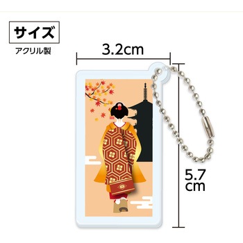 四季をまとう!京都の舞子デザインのアクリルキーホルダー!秋の風景と舞子さんをモチーフにした、京都らしさあふれるデザインのアクリルキーホルダーです。京都の秋の情景をやわらかな色合いで表現し、季節と日本の伝統美を感じられます。かわいらしい四角デザインで、バッグや小物に簡単に付けられます。日常使いはもちろん、京都好きな方への贈り物や観光土産、コレクションアイテムとしてもおすすめの一品です。インバウンド向けの景品やお土産、海外への方のプレゼントなどにもおすすめです。