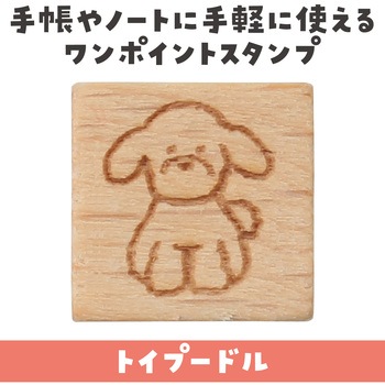 くるんとした毛並みと、ちょこんとした立ち姿がかわいいトイプードルの木製スタンプです。手帳に押すだけで、ほっこり気分に。10×10mmのワンポイントサイズで、メモや日記、カレンダーにおすすめです。犬好きの心をくすぐる一押しのアイテムです。