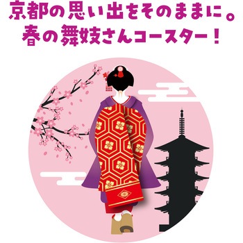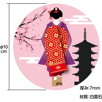 春の風景と舞子さんをモチーフにした、京都らしさあふれるデザインの白雲石コースターです。京都の春の情景をやわらかな色合いで表現し、使うたびに季節と日本の伝統美を感じられます。吸水性に優れた白雲石が水滴をしっかり吸収し、机を濡らしません。裏面はコルク素材で滑りにくく、傷防止にも役立ちます。日常使いはもちろん、京都好きな方への贈り物や観光土産、コレクションアイテムとしてもおすすめの一品です。インバウンド向けの景品やお土産、海外への方のプレゼントなどにもおすすめです。