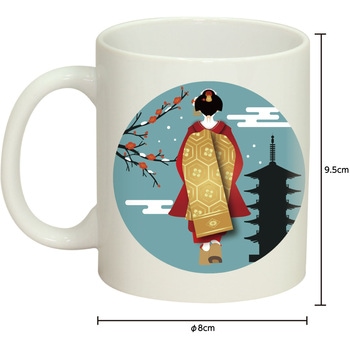 四季をまとう!京都の舞子マグカップ!冬の風景と舞子さんをモチーフにした、京都らしさあふれるデザインのマグカップです。京都の冬の情景をやわらかな色合いで表現し、季節と日本の伝統美を感じられます。日常使いはもちろん、京都好きな方への贈り物や観光土産、コレクションアイテムとしてもおすすめの一品です。インバウンド向けの景品やお土産、海外への方のプレゼントなどにもおすすめです。