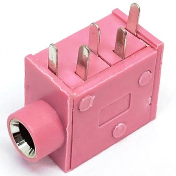 プリント基板取り付け用のΦ3.5mmステレオミニジャック。プラグ検出スイッチ付の5本足タイプ。