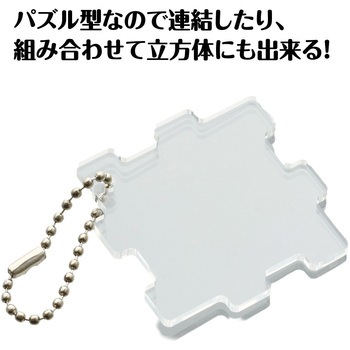 つなげて広がる、立体パズルキーホルダー!パズル型のアクリルキーホルダーです。1ピースずつ連結して遊んだり、すべて組み合わせて立方体(キューブ)にしたりと、立体的なデザインを楽しめる遊び心のある仕様になっています。小サイズで持ち運びしやすく、ガチャ景品やイベント配布用としてはもちろん、名入れ加工やオリジナルデザイン制作などOEM・ノベルティ向けのベース素材としても活用しやすいアイテムです。