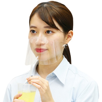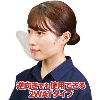 使い捨て可能で衛生的つけたまま飲食できる耳が痛くなりにくく、あごにつけないから話しやすい全く新しい透明マスク逆向きでも使用できる2WAYタイプ アルコール消毒・洗剤拭き取りOK!0.2mm厚PET製両面保護フィルム付曇り止め加工超軽量7g特許出願中