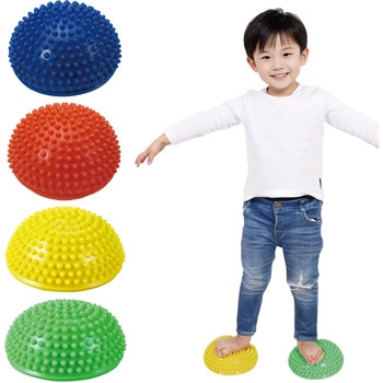 半球型形状による安定感があり、踏む・乗る・座るといった簡単な動作で、遊び感覚のまま体幹やバランス感覚を自然に鍛えられるトレーニングボールです。表面の突起が足裏や手のひらを刺激し、姿勢保持力や感覚統合、バランス能力の向上をサポートします。初めてのバランス運動でも安心して使え、運動遊びからエクササイズ、リハビリまで、子どもから大人まで幅広いシーンで活用できる万能アイテムです。
