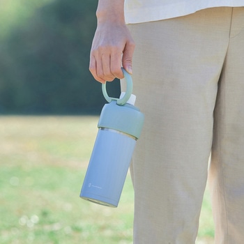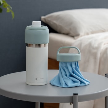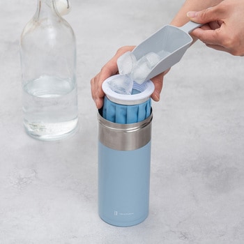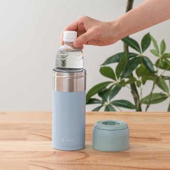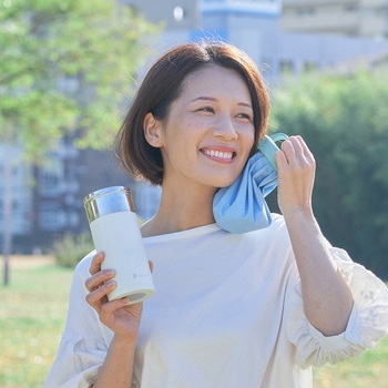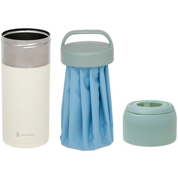 氷のうを真空ステンレスボトルにセットして、保冷状態で携帯できる冷感アイテムです。氷のうを使わない時は、ペットボトルの保冷ホルダーとして活用できる便利な2WAYです。