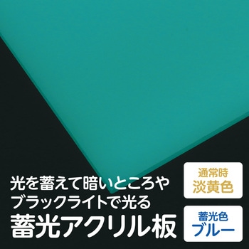 光を当てて暗い所やブラックライトで反応して淡黄色からブルーに変化!LEDライトやブラックライトを当てれば数秒で発光!ライブイベント、グッズ、アクセサリーにも使用可能!太陽光や電灯の光を蓄えて暗いところで光るアクリル素材。素地は淡黄色