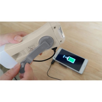 長時間ほったらかしでも使える「スーパーキャパシタ」を搭載、いざという時に備えられる手回し充電LEDライト。パソコン等のバックアップ電源として実績のある電気二重層コンデンサ(スーパーキャパシタ)を採用することで、充電池が過放電して使用できないという事を予防。非常時にはUSBケーブルで繋いでスマホ充電も可能です。また、ランタンキャップが付属。キャップを取り付けることで、ランタンとしても使用できる2WAYです。