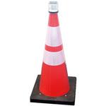 カットコーン(上部が差込できるよう穴が開いたタイプ)対応の警告灯になります。別売のコーン用アダプタを使用することでカラーコーン(穴なし)にも使用できます。