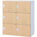 収納物のさまざまな用途に合わせた家具を奥行きサイズ450mmの木目扉タイプの収納庫になります。錠前はダイヤル錠。6人用のパーソナルボックスなので多様な働き方に対応出来る配線機能を有した個人収納ボックスになります。オプションのノートPCスタンドを使用すればノートPCも省スペースで収納出来ます。下置き専用になります。(ベース別売り)