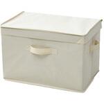 シンプルな収納ボックス。ホコリや入れすぎを防ぐフタ付き。ダブルファスナーでラクラク開閉。高いところのボックスも取り出しやすいタテ型取っ手。軽くて持ち運びもラクラク。箱の内側も樹脂コーティングされて汚れ防止。積み重ねもできるしっかり構造。折りたたみ式で、使わないときは薄く収納可能。