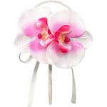 ふんわり軽やかな胡蝶蘭のコサージュ。ふんわり軽やかな花びらが素敵な胡蝶蘭のコサージュです。バッジタイプで取り付け簡単です。ポケットに差し込むことも可能です。胸元を華やかに飾るので、卒業式、入学式、発表会や結婚式など、さまざまなお祝いのシーンでお使いいただけます。材質:ポリエステル、スチール。サイズ:約115×150×15mm