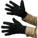 牛床革のバット部とショルダー部を使用したAグレード床革手袋。しかりと黒く染めました。内綿付で夏はさわやか、冬は暖かい。