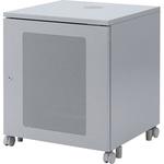 AV機器の収納に便利です。デスク下やオフィスの隅などに設置できるので、空間を無駄なく使えます。前扉にメッシュパネルを採用し、通気性をアップさせています。 NAS、HDD、ルーター、LANハブなどの小型機器の収納にも最適です。棚板は3枚付属し、機器に合わせて位置を変更することができます。 最下段スペースにはタップを収納でき、配線をしやすくしています。 扉と背面パネルには鍵を装備し、セキュリティ、いたずら防止に最適です。 セキュリティワイヤーの取り付けも可能です。扉は簡単に取外しができ、右開き、左開き両方の設定ができます。天井面にはファン(CP-FANS-T、CP-SFANS-T)の取付けが可能です。(1台) 背面にケーブル口があります。本体底面にはアジャスターが付いています。