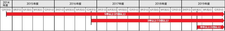 半年以上:3回以上 3年以上:13回以上 5年以上:21回以上