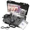 MSHA承認モデルのUniversal 44XRMポンプ5台セットキットで、4セルパックのNiCadバッテリー搭載ポンプ、ドライバーセット、フィルターカセットホルダー、Type A保護チューブカバー付き調整式チューブホルダー、排気ポート用フィッティングが各5点ずつ含まれ、100-240 V対応の5ステーションマルチチャージャー1台およびキャリーケースが付属します。流量範囲は一定流量5~3000 ml/minです。