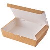 仕切りがない底深な一体折容器で、単品メニューにも、お弁当にも!幅広いメニューにご使用ください。 パルプモールド(紙)で出来たシャープなデザインのランチボックスです。 特殊モールド製法により両面を滑らかにすることで紙粉が出にくく、内側CPPラミ加工により、耐油性、防水性があります。電子レンジ対応です。 フタの縁が内側に落ちているので汁もれしにくい設計です。本体と蓋の境目に切り取り線があり、切り離しができます。